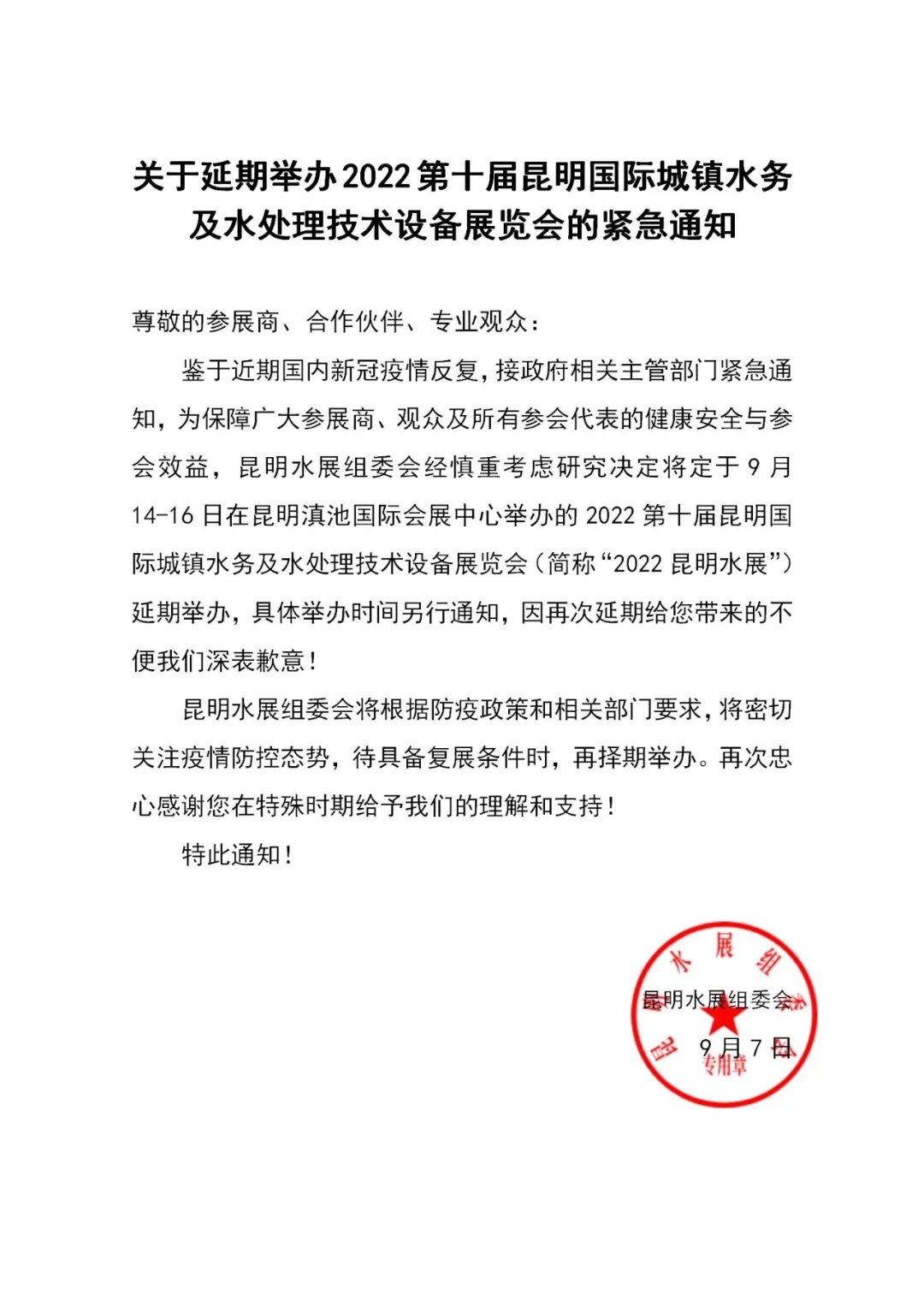 关于 2022 第十届昆明国际城镇水务及水处理技术