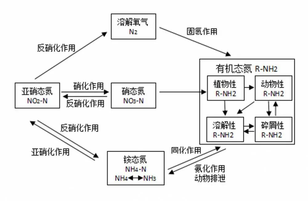 生化处理过程中,废水总氮的去除要经历:有机氮水解→氨氮硝化→硝态氮反硝化→氮气这几个过程(此处可翻看《废水中的氮怎么去除?》这篇文章了解下废水的氮怎么去除)。这整个过程涉及到好氧条件的硝化和缺氧条件的反硝化,过程溶解氧控制要求比较高;还涉及到整个过程pH值的控制(有机氮水解pH值升高,硝化pH值降低,反硝化pH值升高),一旦pH值控制不好整个系统也不能稳定;还涉及到有机碳源的投加,一旦投加过量会抑制硝化,而且出水COD也有可能超标。