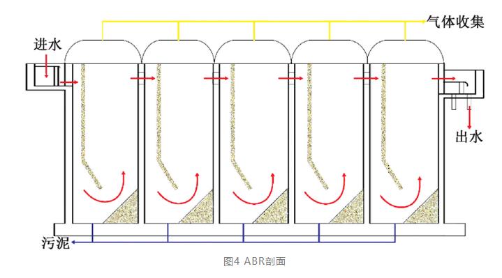 (2)厌氧消化。经对比而言,厌氧生物法是比较经济和有效的,推荐作为主要工艺。但厌氧生化反应器的类型多样,选用何种类型的厌氧生化反应器对废水处理十分关键,可以根据建设单位经济、用地条件,选择目前运行较好的UASB、IC、ABR等厌氧反应器,其中ABR反应器在高负荷情况下,具有高效截留活性微生物、运行费用低、剩余污泥少等优点,适用于处理高浓度有机废水。