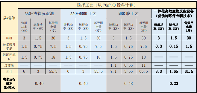 4、云南污水处理设备设备耗电量对比表: