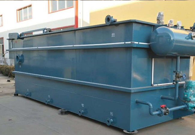 气浮机设备是目前使用比较广泛的污水处理设备,在水中产生大量的微细气泡,使空气以高度分散的微小气泡形式附着在悬浮物颗粒上,造成密度小于水的状态,利用浮力原理使其浮在水面,从而实现固-液分离的水处理设备。 气浮机分溶气、浅层、涡凹三种。目前在给水、工业废水和城市污水处理方面都有应用。 气浮机的主要原理是对污水加入药剂使其反应成絮状物质,同时向污水中注入大量气泡,使气泡与絮状结合随之浮到液体表面,再通过配套的刮渣机使其排出,清水自下方的排水口排出。